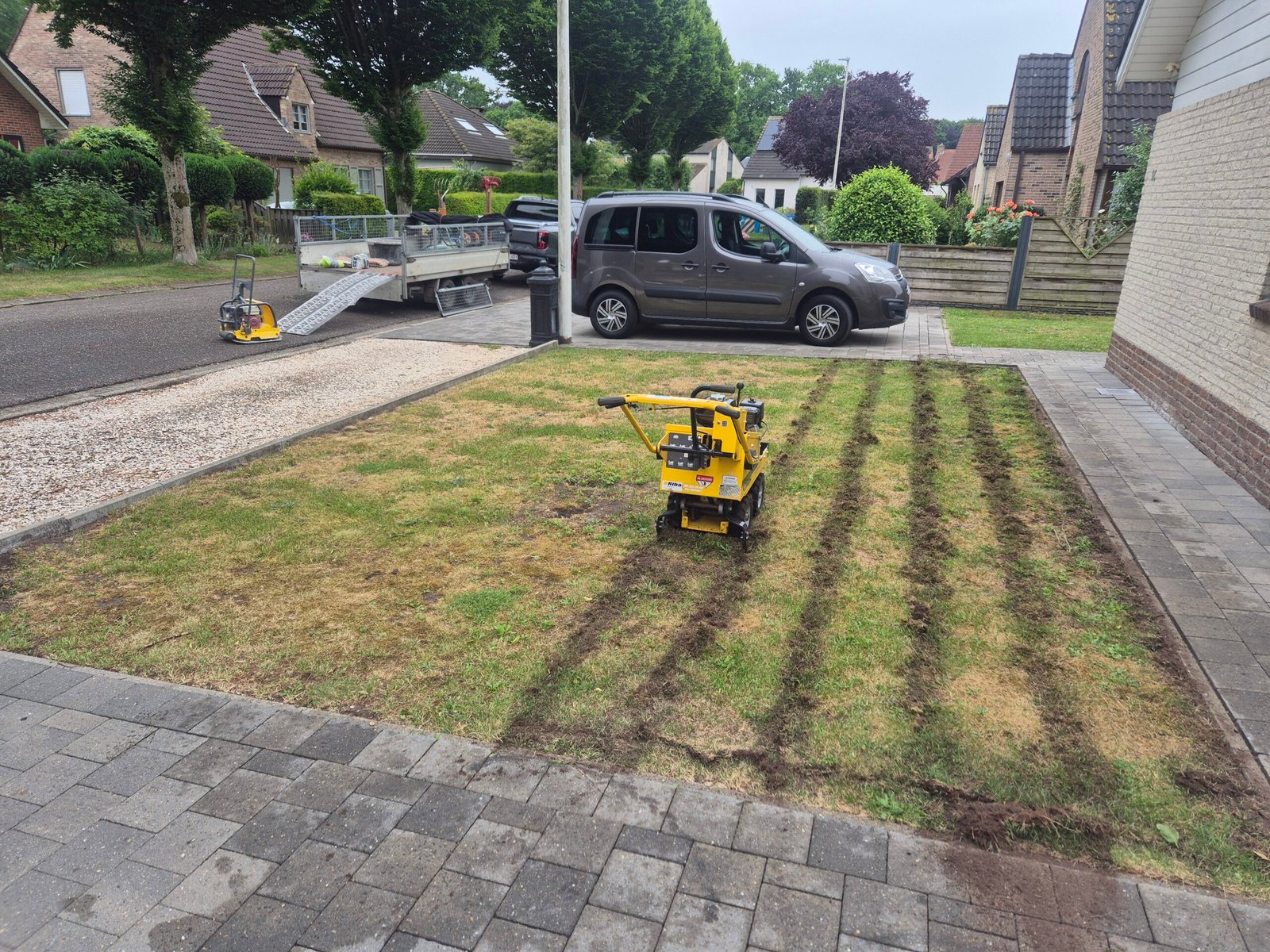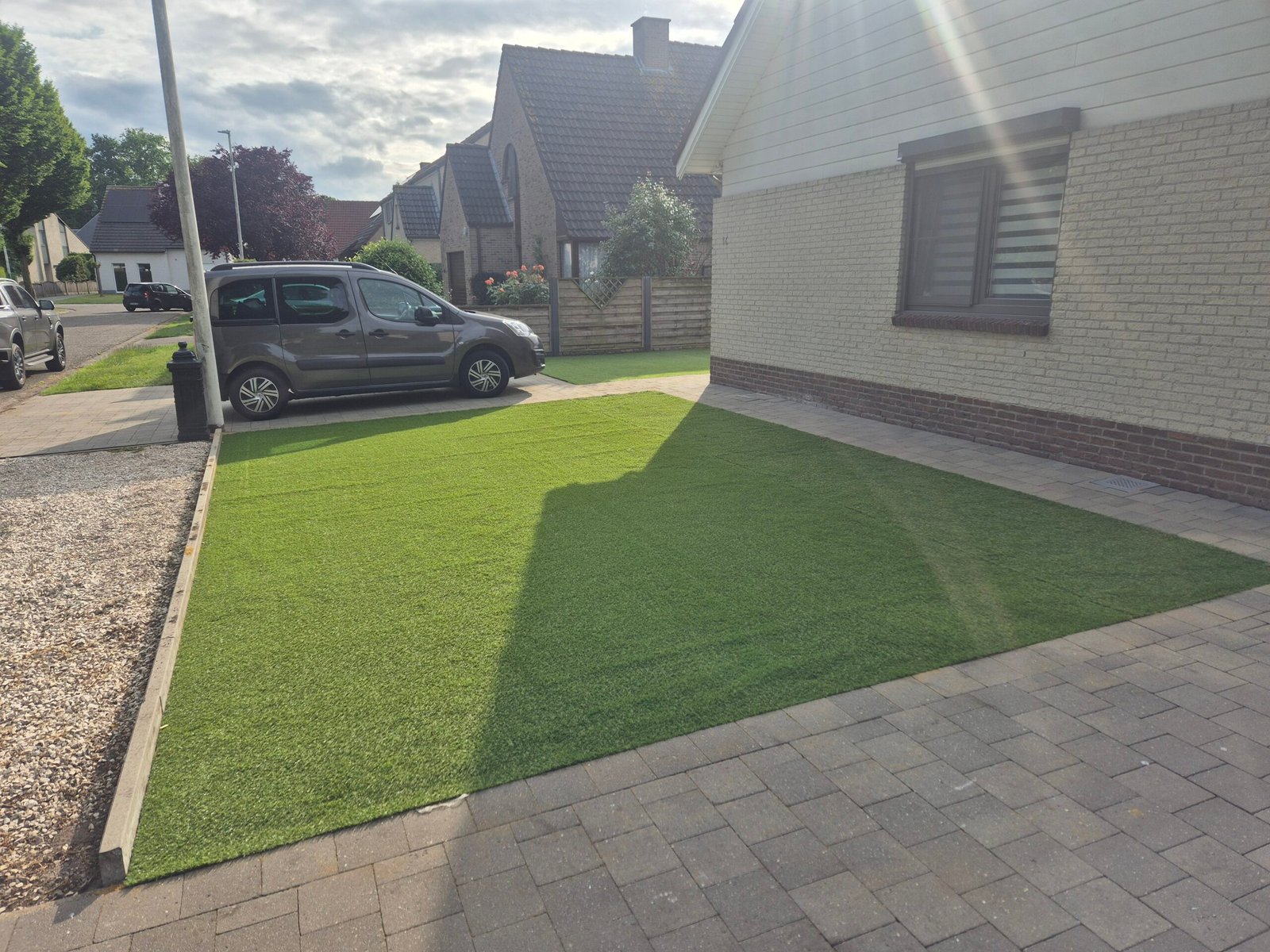 Moderniseren van voortuin met kunstgazon.